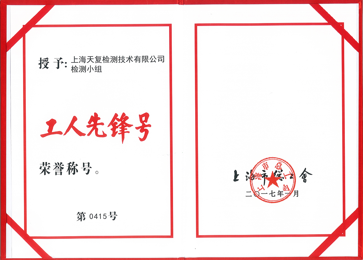 ——天复检测荣膺“上海市工人先锋号”荣誉称号